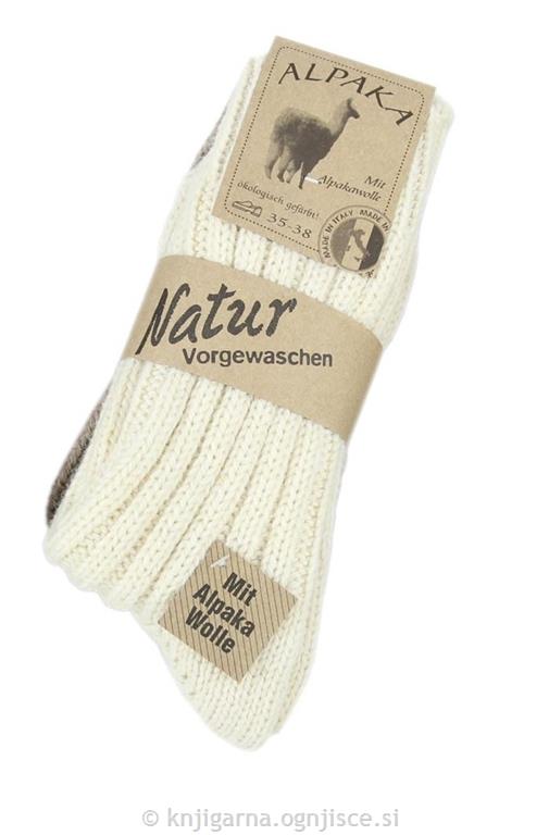 Volnene nogavice za odrasle številka 39-42, vsebuje alpakino volno, 2 para v zavitku v temno rjavi in beli barvi.