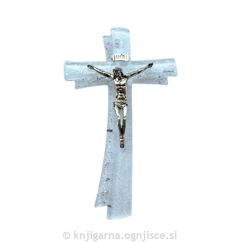 KRIŽ STEKLEN BEL - SREBRNI MOZAIK Srebrna 16 cm