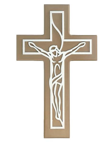 238832 - KRIŽ 28x17cm BEL RELIEF NA RJAVI PODLAGI