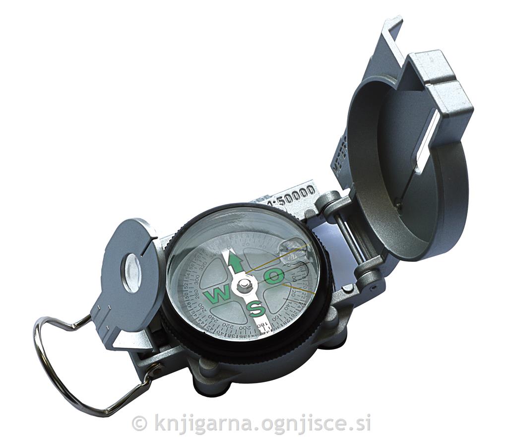 natančna kompasna igla z vizirjem in povečevalnim steklom