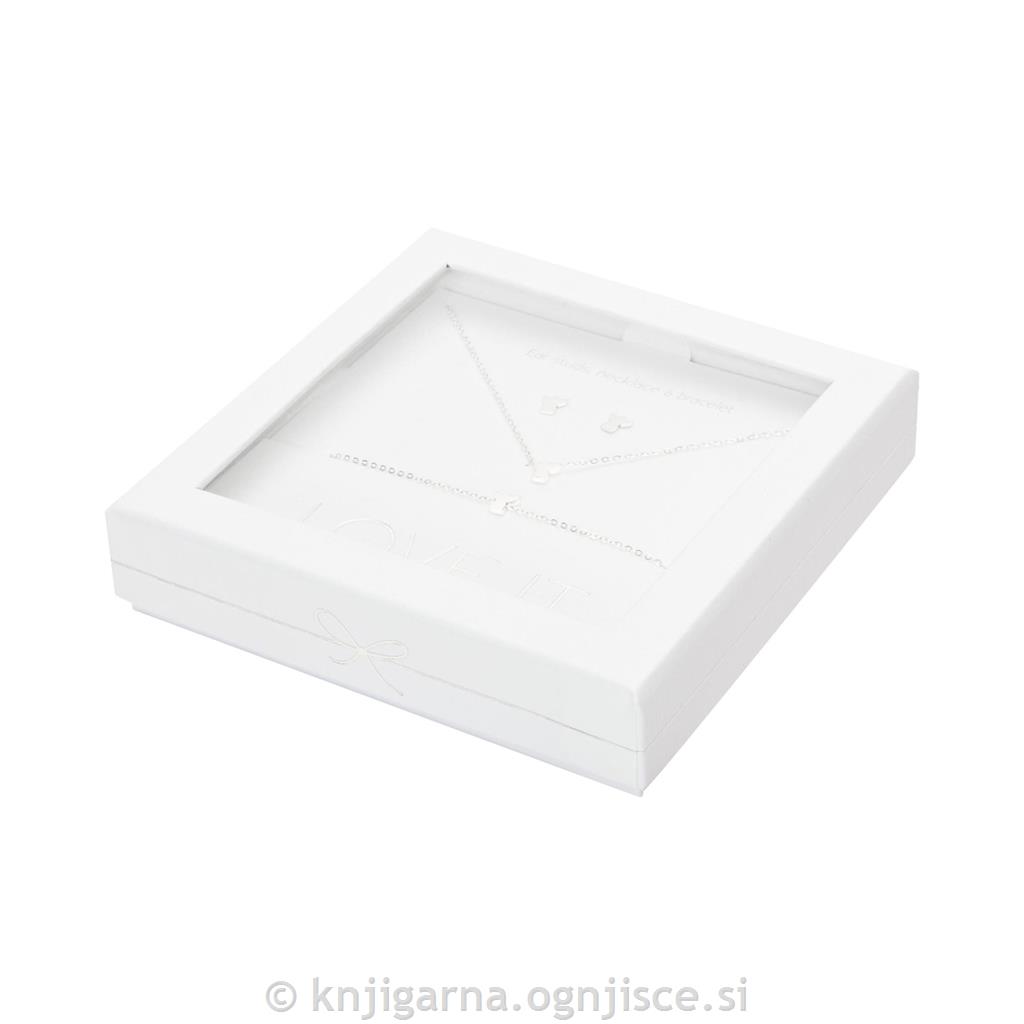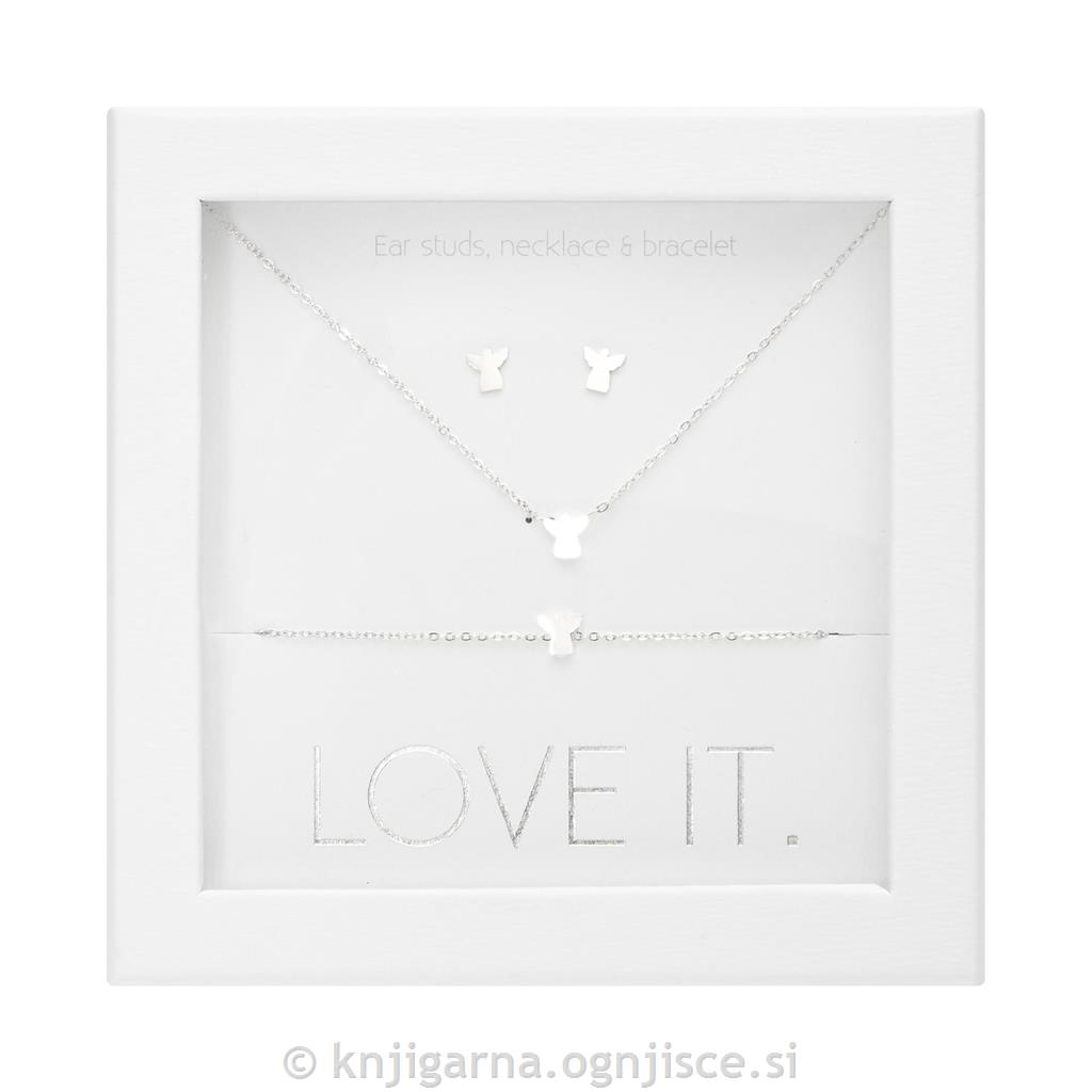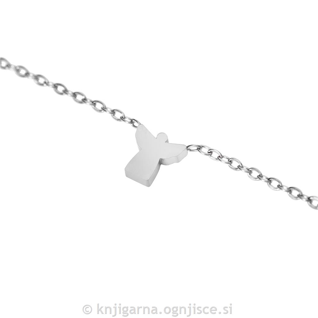 Darilni komplet, ki vključuje zapestnico, ogrlico in uhane s simbolom angela varuha. Pakirano v elegantni darilni embalaži.