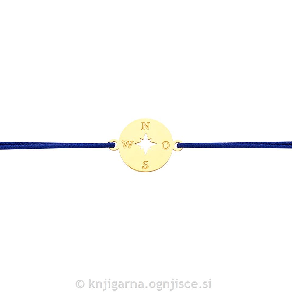 Elastičen trak z nastavljivo velikostjo zagotavlja udobno nošenje in se brez težav prilagodi vsakemu zapestju. V središču je simbol kompasa iz nerjavečega jekla v zlati barvi, za vse navdušence potovanja.