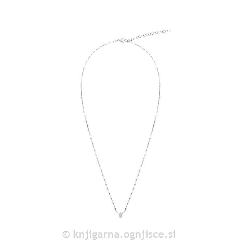 Elegantna ogrlica z obeskom, posrebrena. Ogrlica ima podaljšek približno 5 cm, kar omogoča prilagoditev dolžine.