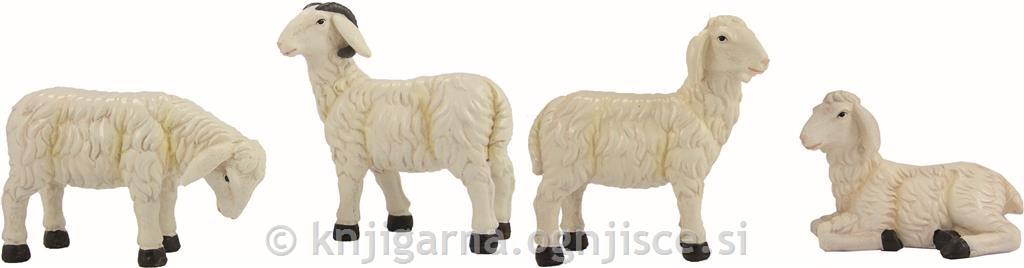 4-delni komplet ovc v beli barvi. Ovčke so v različnih položajih, tako da si lahko naredite lepo čredo v jaslicah.