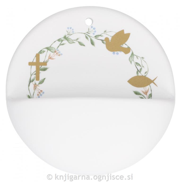Posodica za blagoslovljeno vodo iz porcelana »Blagoslovljen in varovan«