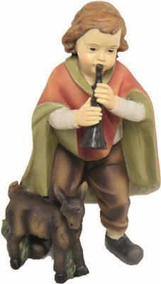 Figura pastirčka, ki igra flavto kozličkom ob nogi.