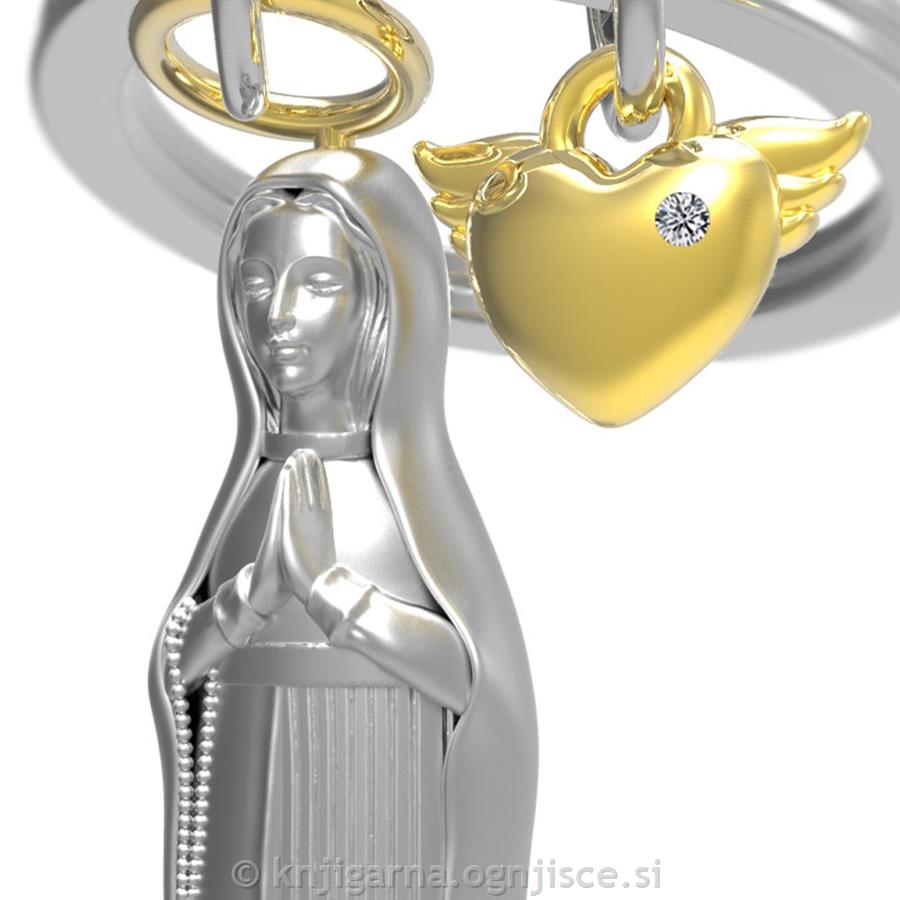 Mat kromirana površina + zlat sijajni obesek v obliki krilatega srca